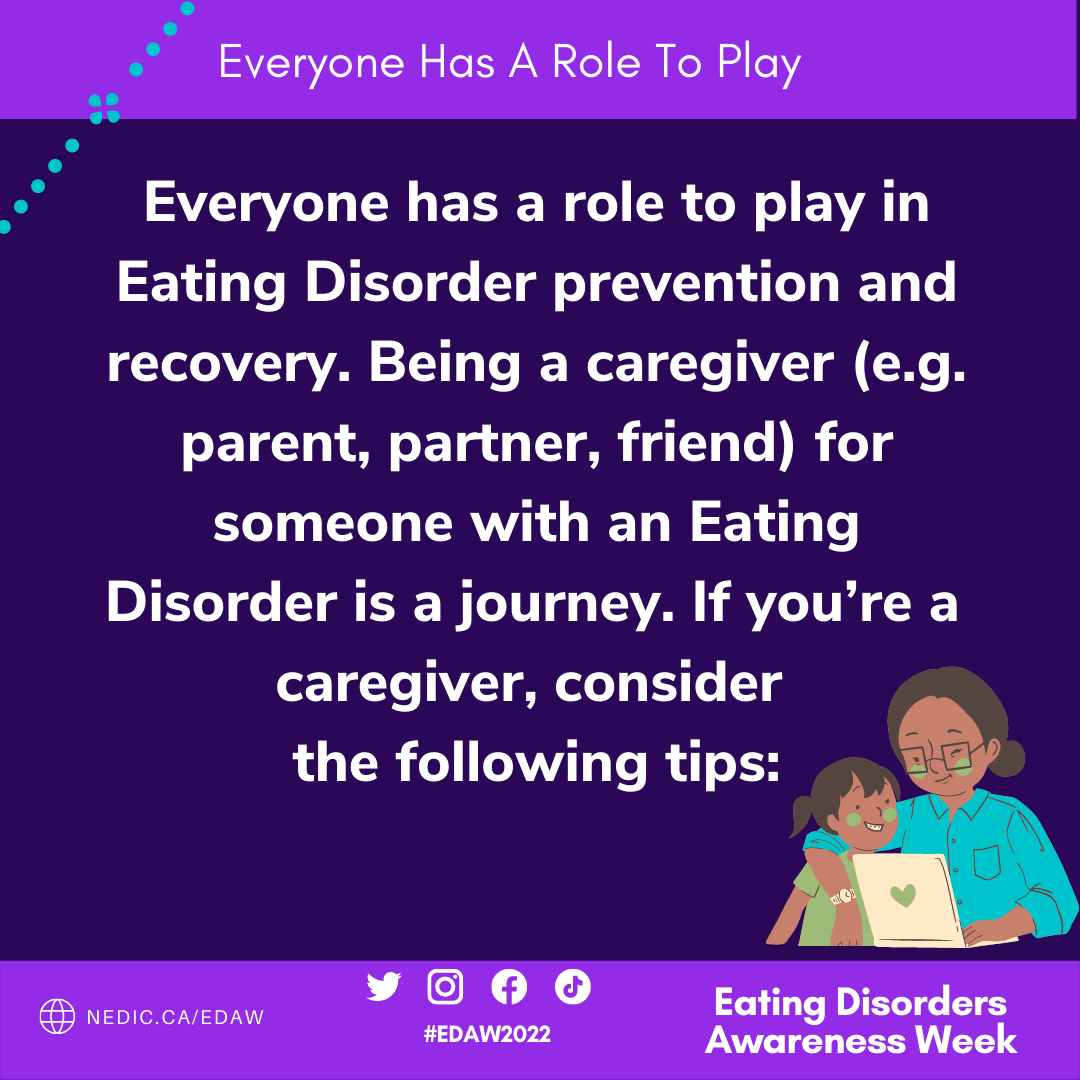 Save on your phone, take a screenshot and text to a friend, or print it to pin up around you. This handy poster shares some introductory tips for you to keep in mind as you care for someone with an Eating Disorder.