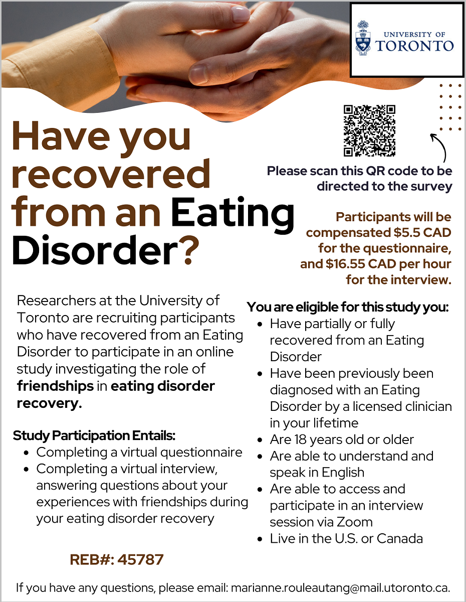 This study involves completing one questionnaire and a one hour-long interview session. Your valuable insights will help increase understanding of how friendships influence recovery outcomes.