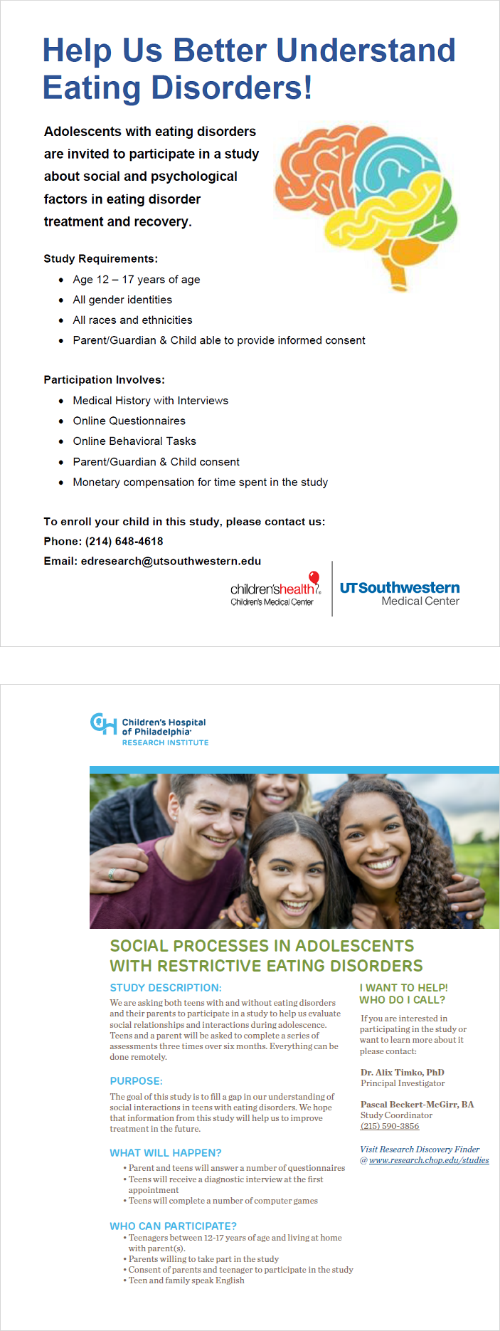 Contact the study coordinator, Pascal Beckert-McGirr, at beckertmcp@chop.edu or (215) 590-3856.